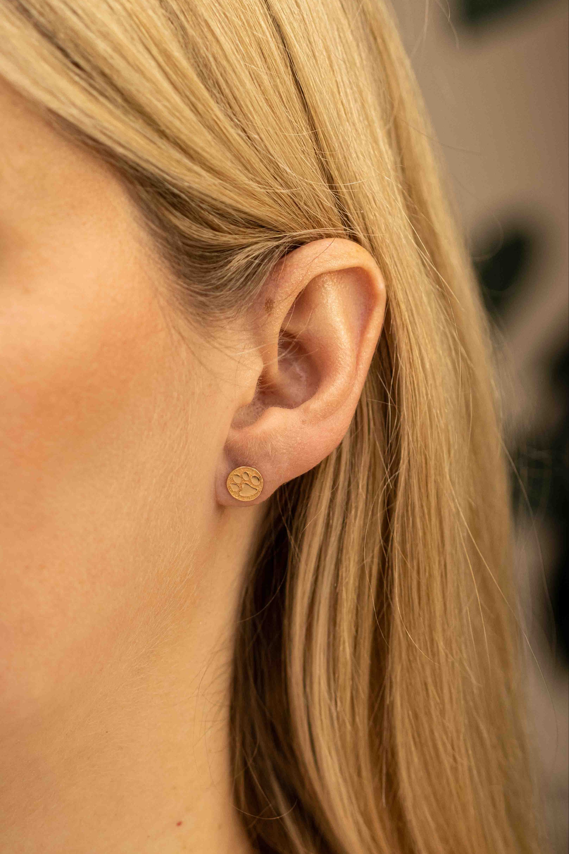 Žaismingi 585 prabos auksiniai auskarai su šuniuko letenėlėmis. Užspaudžiamas užsegimas, raudono aukso blizgesys ir išskirtinis gyvūnų motyvas. Puikiai tinka dovanai ir kasdienai.