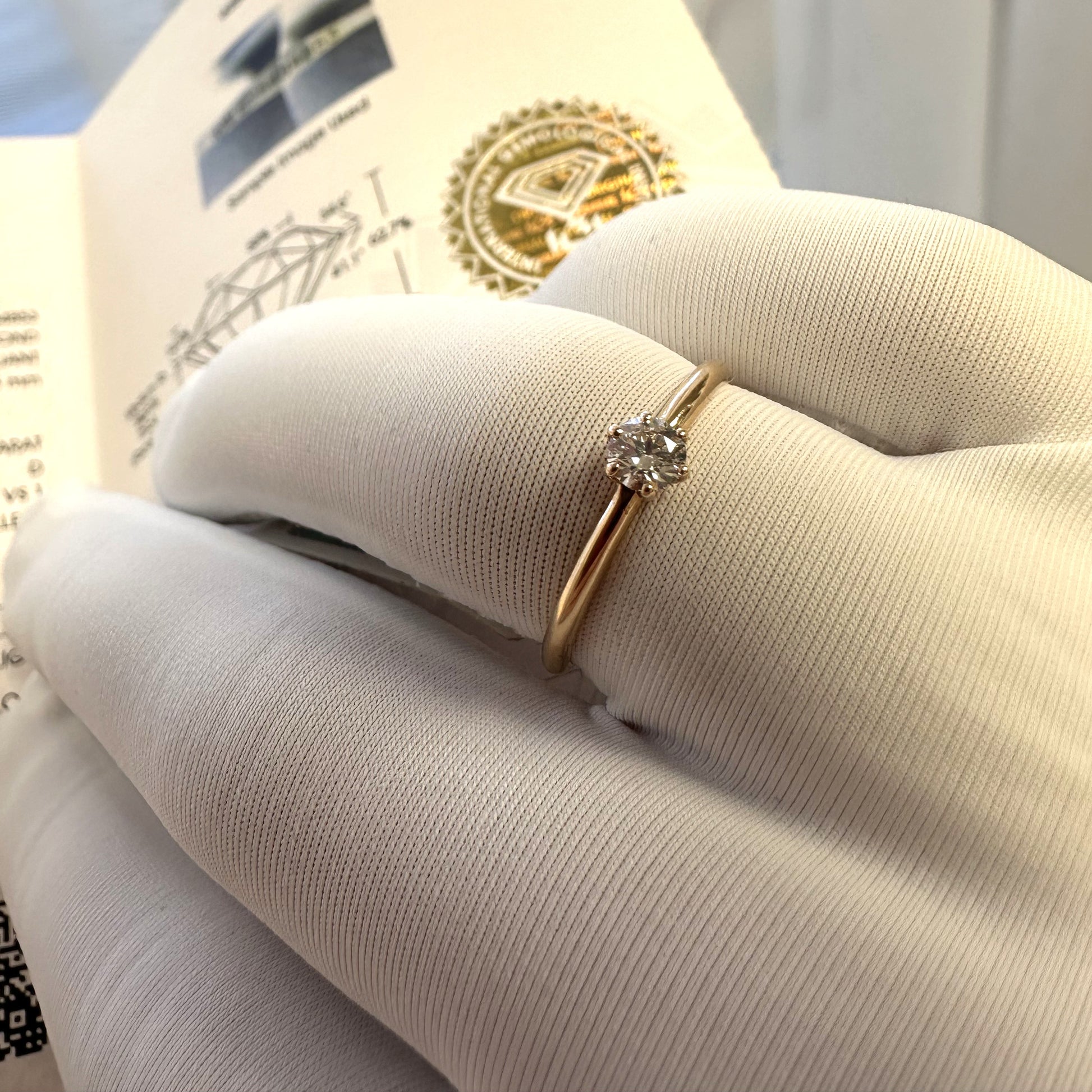 Dirbinys išsiunčiamas per 1–2 d. d., turi dvigubą sertifikavimą – prie žiedo tvirtinamas sertifikatas, papildomai pridedamas ir IGI akučių sertifikatas.